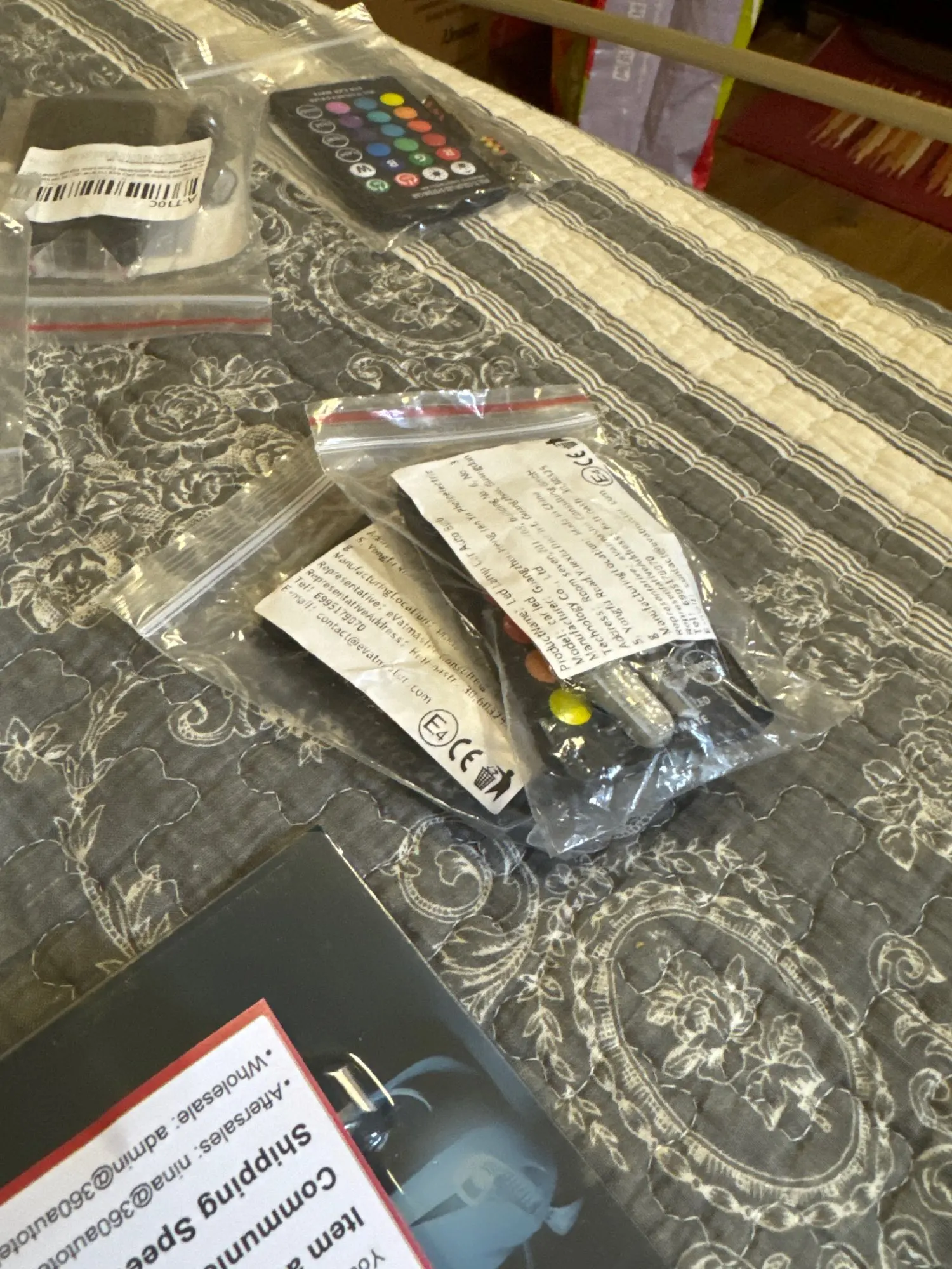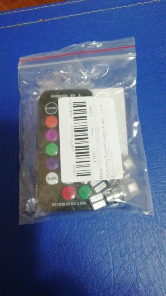 Pair of multi-color led spotlights with remote control arrived after 12 days, good light and various colors to choose. I highly recommend them.