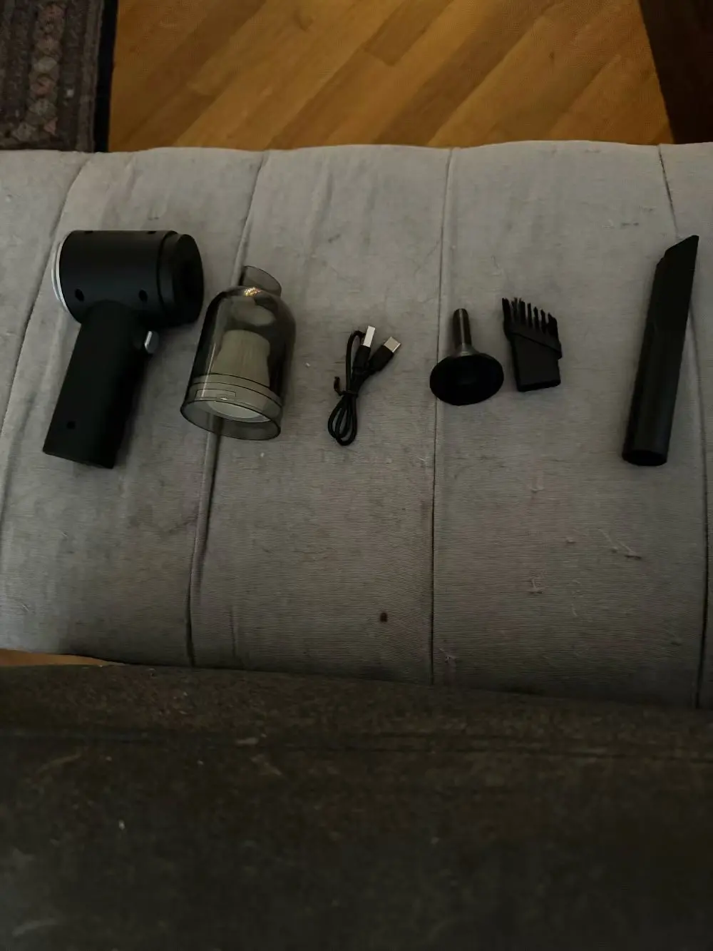 The vacuum cleaner is quite good, quite small and delicate. After use, it can be easily placed in the car without any inconvenience. The suction is also good, and the brush works well together. The dirt on the seat cushion cover can be easily brushed out, and after brushing back and forth, it will be cleaned up in no time. The cost-effectiveness is also quite high. The car is sufficient.